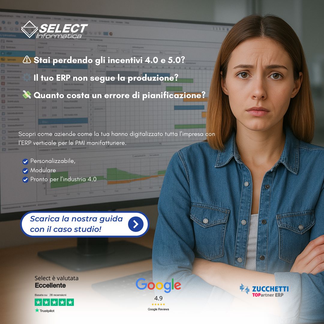 🗣️ “Con Select abbiamo integrato produzione e contabilità in un unico sistema ERP. E abbiamo recuperato il 45% dell’investimento con gli incentivi.”